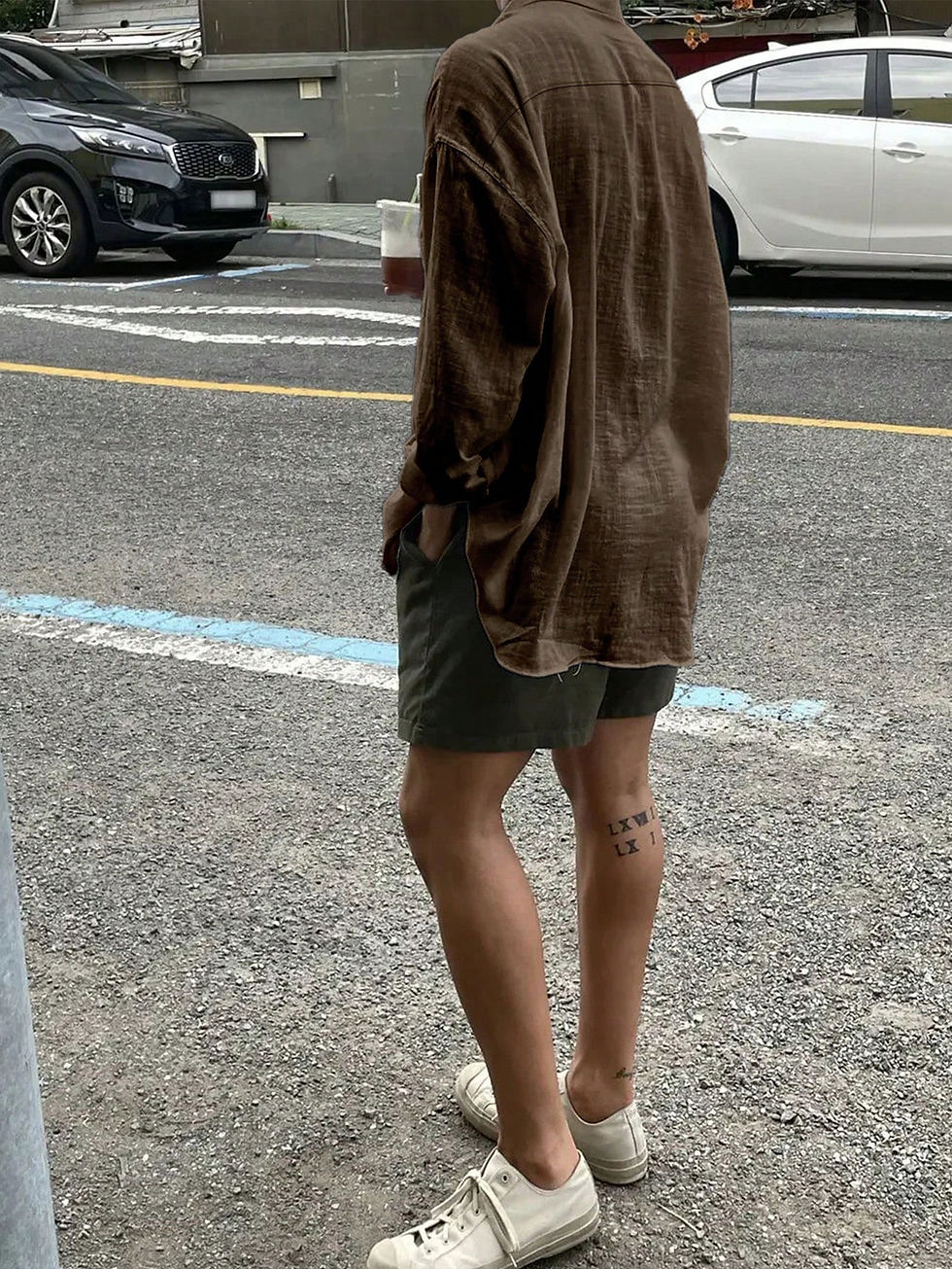 [UBSH-013] Solid Color Linen Style Pocket Shirt - Brown